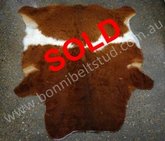 To view the following pages click on the respective menu buttons below:Perfect Belted Galloway Hide Sales | Not so Perfect Belted Galloway Hide Sales | Hides in Homes | Care for your HidesOur Not So Perfect Belted Galloway Hides are mainly those that don't have that perfect belt or have just a uniquieness about them that makes them special and our dear tanner has talked us into getting some of the imperfect beltie hides done as in his words "The hair on the hides are fantastic and it just makes them a bit more unique. You may be quite surprised". And we have been! So you never know what may pop up here that is 'that bit different'.There are also a few that have been damaged due to the abattoir processing.Once going through the available hides, if you would like more photos and information regarding the hair or where the nicks/holes are or any other damage, please contact us at hides@bonnibeltstud.com.au and we will only be too happy to reply.Prices below are in Australian Dollars - currency converter - for indication purposes only of the prices - at the bottom of the page.So far we have exported our hides to New Zealand, Scotland and the USA.Please remember, prices do include GST. Postage to most (not all) Australian mainland addresses is also included. When exporting overseas, our 10% Australian GST will be taken off and your postage and insurance will need to be added. You will also be responsible for any GST that maybe incurred if you do not live in Australia along with any of your own countries custom's fees. Postage prices will vary due to weight and country and can be organised on application. There will be no charge for handling costs.Nationally, we accept payment by Cash or via Direct Deposit whilst internationally, we accept payment via Direct Deposit (this will incur a $20 handling fee) or through Western Union or similar.We have more hides being processed throughout the year and as they come in we will be add them to the site.