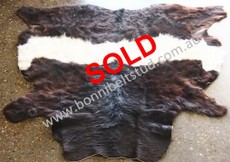 # 63 Is another summer Black and White Belted Galloway hide with chocolate tinges. It has longer hair than some of the other summer hides we have had, especially at the underbelly which is glorious…Length 172 cmsGirth 150 cmsFront legs 125 cmsBack legs 169 cmsSold in Australia