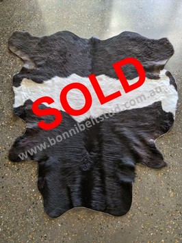 #84 This Black and White Belted galloway hide is a good example of a summer coat. He has short straight hair with fluffy sides on his belly.He does have a few small spots of damage.Length 179 cmsGirth 154 cmsFront Legs 126 cmsRear Legs 165 cmsSold to the WA