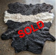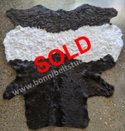 # 49 This slightly smaller Black and White Belted Galloway hide has medium downy hair which is longer at the girth. It has long mane hair with a much longer curlier backbone ridge hair.Length 162 cmsGirth 144 cmsFront legs 137 cmsBack legs 171 cmsSold to the USA